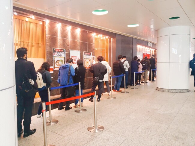 新宿駅直結の地下街という好立地から、ラーメン好きの方だけでなく、平日にはランチタイムや仕事帰りに立ち寄る新宿西口のオフィスワーカーの姿も多く、多い時には100人を超える行列ができるなど連日賑わいをみせています。