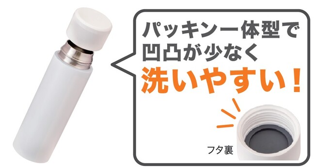 そんなお客様のお困り事を解決したい想いから、フタとパッキンが一体型になったステンレスボトルを発売。ご好評につき、この度全店舗にて取り扱いを開始いたしました。