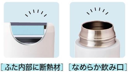 ふたの内部に断熱材を入れることで、保温効力がアップ。ボトル本体も真空断熱二重構造のため、保温/保冷効果が長持ちいたします。