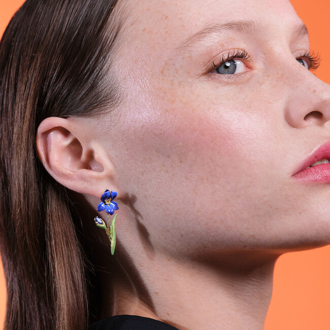 ゴッホの愛したアイリスがそよぐアシンメトリーピアス