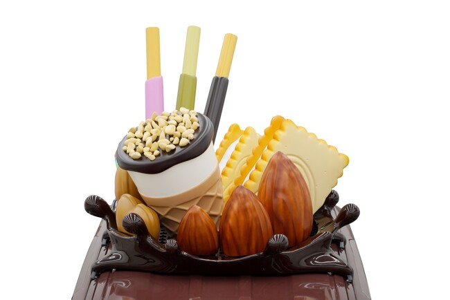 車両のデザインは子どもたちが描いたアイデアが詰まっています。車両の側面には虹を描き、ルーフにはGlicoの代表的な商品である「ポッキー」や「ビスコ」、「ジャイアントコーン」のほか、「アーモンド」をのせました。色味や質感にこだわって制作し、忠実に再現しています。