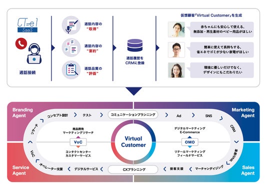 蓄積されたデータはVoC基盤として、商品・サービス開発や顧客コミュニケーションの最適化など、マーケティング活動全般に活用できます。さらに今後は、このVoC基盤をCRM・購買履歴・Web行動データなどの1st Party Dataと統合し、「Virtual Customer(仮想顧客)」としてモデル化。AIエージェントと連携させることで、商品企画や販促施策など、企業全体のマーケティングプロセスを支援する仕組みへと発展していきます。