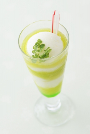 フレッシュメロンジュースと微細氷入りさっぱりアイスの組み合わせ。ストローでくるくる混ぜると、シャーベット状の味わいに!メロンの上品な香り&甘みを爽やかにお楽しみいただける、新感覚のドリンクデザートです。