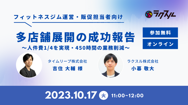 今回2023年10月17日(火)にタイムリープ株式会社様とともに多店舗展開における人件費・工数削減について事例を交えて解説いたします。
