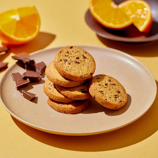 オレンジの皮やペーストを練りこんだクッキー。ビターチョコレートを合わせ、大人向けの爽やかな味わいに仕上げています。