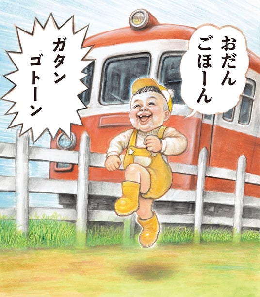ママにおつかいを頼まれたケンちゃんは買う物を忘れないように「おだんご ごほん」と唱えながらお店に向かいますが、そんなケンちゃんが歩く道の横を「ガタン ゴトーン」と電車が通ります。