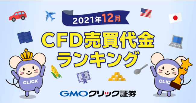 GMOインターネットグループのGMOフィナンシャルホールディングス株式会社の連結会社で、金融商品取引業を営むGMOクリック証券株式会社(本社:東京都渋谷区、代表取締役社長:鬼頭 弘泰、以下:当社)は、2021年12月の当社CFD売買代金ランキングを発表いたします。