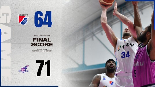 2025年3月2日(日)に開催された、りそなグループB.LEAGUE 2024-25シーズン【福島ファイヤーボンズvs.ライジングゼファーフクオカ】の結果は、 “福島71-64福岡”で福岡の敗戦となりました。
