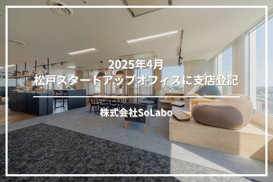 株式会社SoLabo(本社:東京都渋谷区、代表取締役 田原 広一)は、松戸スタートアップオフィス(千葉県松戸市松戸)内に2025年3月11日(火)に支店登記したことをお知らせいたします。