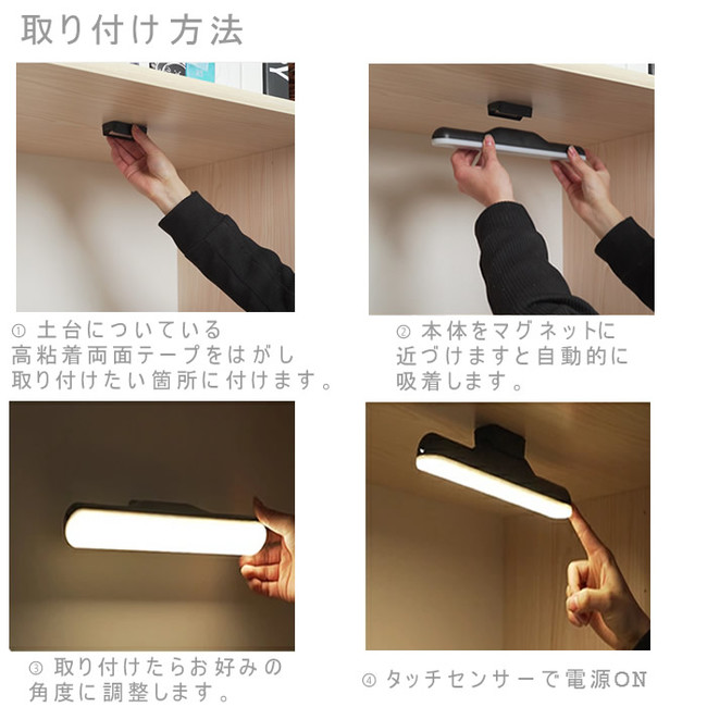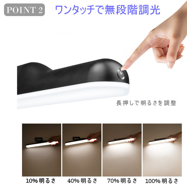 無段階調光 ledライト卓上ライト コードレス デスクライト 学習机 充電式 usb 目に優しい タッチセンサ 掛け式 LEDライト マグネット 貼り付け式 化粧 勉強 読書 授乳 作業 卓上 寝室 キチン 洋服ダンス オフィス 角度調整【gi-LR-006】