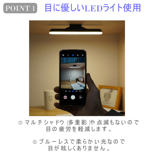 ・平面発光の設計により目に優しい光なので、長時間の仕事や勉強でも目が疲れにくいです。