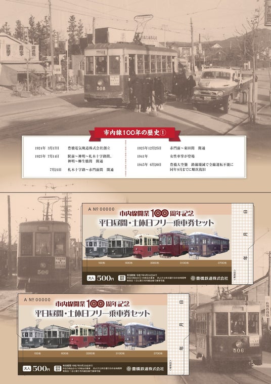 (2)記念乗車券「市内線開業100周年記念 平日昼間・土休日フリー乗車券セット」の発売