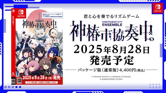 『神椿市協奏中。』のNintendo Switchパッケージ版は予約受付中!価格は4,400円(税込)で、これまで発売された全てのコンテンツ(販売価格9,320円(税込)分)が含まれているほか、2025年7月から放送開始のTVアニメ『神椿市建設中。』の楽曲も収録されており、リズムゲームで遊ぶことができます。