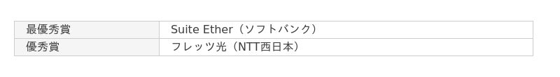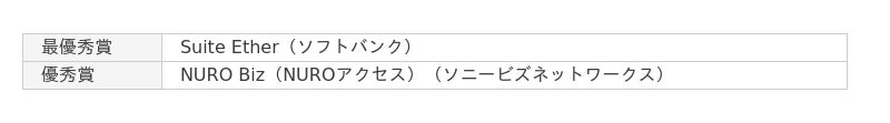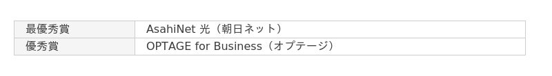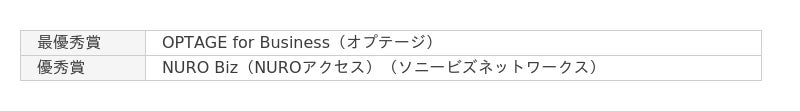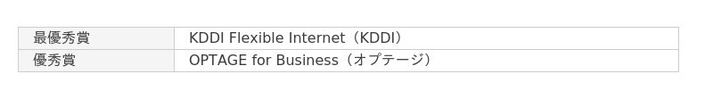 大企業の総合満足度は昨年に続いてオプテージのOPTAGE for Businessが1位、2位も昨年同様にソニービズネットワークスのNURO Biz(NUROアクセス)が獲得しました。中小企業ではソフトバンクのSuite Etherが1位に、ソニービズネットワークスのNURO Biz(NUROアクセス)が2位となりました。小規模、個人事業主ではAsahiNet 光(朝日ネット)が最優秀賞、KDDI Flexible Internet(KDDI)が優秀賞という結果になりました。