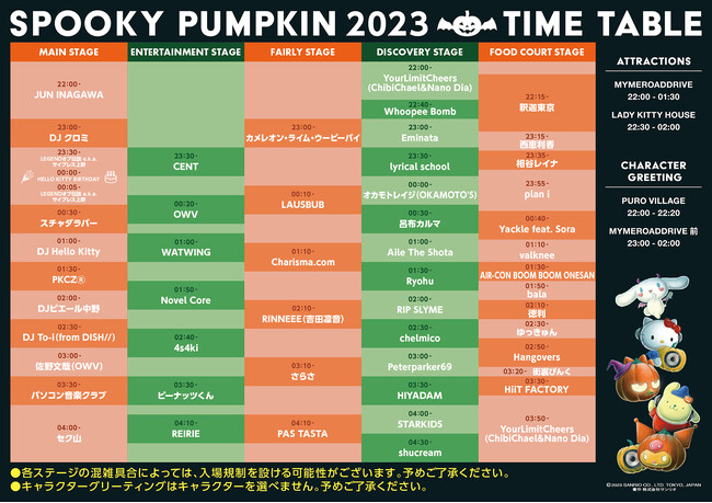 ・各ステージの混雑具合によっては、入場規制を設ける可能性がございます。予めご了承ください。
