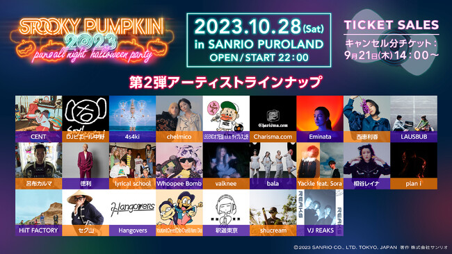 株式会社サンリオエンターテイメント(代表取締役社長:小巻亜矢)が運営するサンリオピューロランド (以下、ピューロランド)は、音楽事務所「株式会社メロディフェア」(以下、メロディフェア)とタッグを組み、10月28日(土)に一夜限りのオールナイトハロウィーンパーティ「SPOOKY PUMPKIN 2023 ~PURO ALL NIGHT HALLOWEEN PARTY~」を開催します。