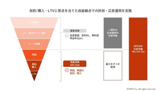 オープンはこれまで、PRESCOを通じてオフラインCV(契約・購入・LTV(顧客生涯価値)に基づく成果地点)の計測を軸に、RPAやAI等のテクノロジーを活用したアフィリエイト広告運用支援と、予算運用型広告支援を行ってきました。その中で特にEC業界で事業を行う顧客から、継続的な売上やLTVの向上を重視していきたいとの声を耳にする機会が増えてきました。