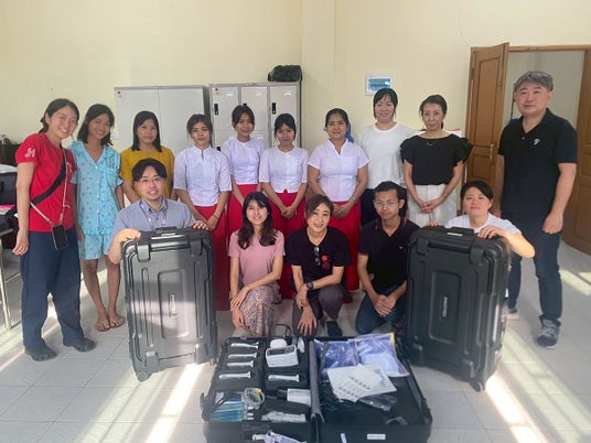 極めて困難な状況下ではありますが、4月7日にアルムスタッフがミャンマー・ヤンゴンへ入り、ポータブル医療機器のセットがスーツケースで持ち運べるため“動くクリニック”と言えるJMCのレクチャーを実施。4月8日からジャパンハートの医療関係者がJMCを活用できるよう、協働体制を構築しています。