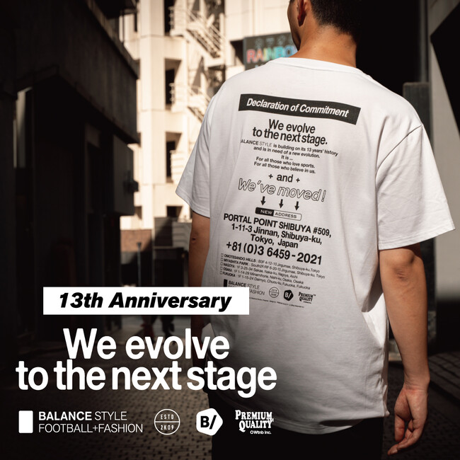 『スポーツラグジュアリーを通じて、すべての人をカッコよくします!』を企業理念に掲げる株式会社バランススタイル(本社:東京都渋谷区、代表取締役社長:高畠 侑加 以下、バランススタイル)は、創立13周年を記念して限定Tシャツを発売し、オンラインストア大好評につき販売開始約1時間で完売となりましたことを御礼申し上げます。そして、バランススタイル直営店にて9月23日(金)より数量限定で販売を開始することをお知らせいたします。