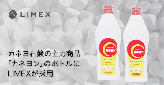 株式会社TBM(本社:東京都千代田区、代表取締役CEO:山崎敦義、以下TBM)は、炭酸カルシウムなどの無機物を主原料とする環境配慮型の「LIMEX Pellet(ライメックスペレット)」が、カネヨ石鹸株式会社(本社: 東京都荒川区、代表取締役: 富田年一、以下カネヨ石鹸)の主力商品の一つであるクレンザー「カネヨン」の製品ボトルに採用されたことをお知らせします。