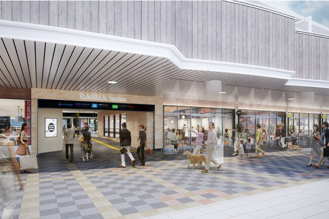 「にしてつストア久留米タミー店」では、2022年12月から仮設店舗営業を行い、2024年3月にリニューアルオープンします。にしてつストア周辺には、スーパーと相性のよい食物販、総菜店舗区画を新たに設けます。