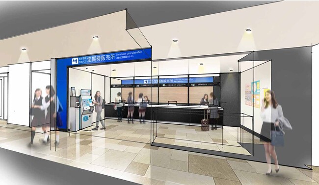 2階北側の飲食店街「味のタウン」にフードコートを新設し、幅広い層のお客さまに気軽にお越しいただける施設にします。フードコート内には、バスや電車の運行状況を表示するデジタルサイネージを設置し、バスや電車にご乗車のお客さまも待合スペースとしてご利用いただけるなど、商交連携してお客さまの利便性向上を図ります。あわせて、1階にある定期券販売所をバスセンターと電車駅改札の動線上に移設し、視認性を高めます。