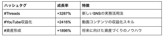 有料記事の急成長ハッシュタグTOP3