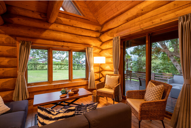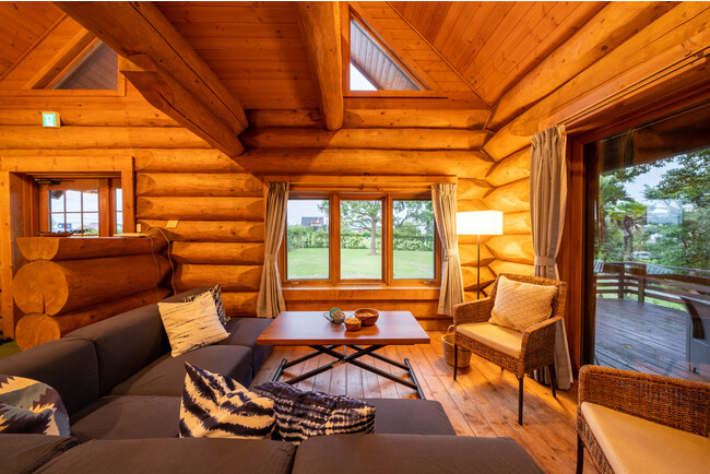 この度、新しくオープンする「スイートヴィラ 一宮SURF」は、千葉県のビーチリゾートとして人気のある「一宮」に位置する、海をのぞむ高台に建てられた一戸建ての貸別荘となります。約400坪の敷地にカナダ産の木材で建てられた温もり溢れる本格ログハウスは、広々としたウッドデッキや味わいのあるロフト、目の前に広がる芝生など、房総の自然と懐かしい雰囲気を醸し出す空間演出により、都会では味わえないくつろぎと開放感にひたることができます。