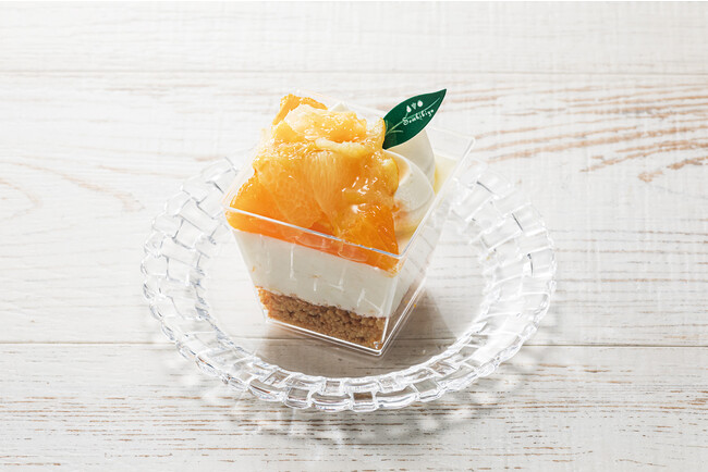 湘南ゴールドのマーマレード入りヨーグルトムースに、オレンジ、湘南ゴールドをトッピングしました。