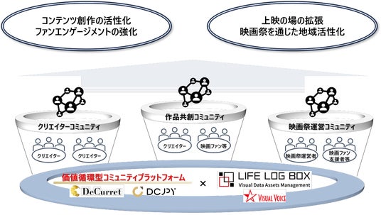 次のステップとして当社のデジタル資産運用サービス「LIFE LOG BOX」や映画祭運営において、コミュニティサービスと DCJPY 活用の実証を行う計画です。これらの協業を通じて、コミュニティを通じた資金調達により創作活動の原資を確保し、コンテンツ制作のチームアップやリソースの相互補完を行い、ファンと創作過程を共有しながら作品を完成させられる世界観を目指します。作品完成後も、作品のシェアや発信による認知度拡大、上映の場の共創、二次創作を通じた作品の経済圏拡張など、コミュニティを 通じてエコノミクスの最大化が可能となります。また、地方の映画祭運営の共創体制構築による地域活性化への貢献、過去の名作フィルムの修復やデジタルアーカイブ化による映画文化の保護など、様々なコミュニティ構築も視野に取組みを進めて参ります。