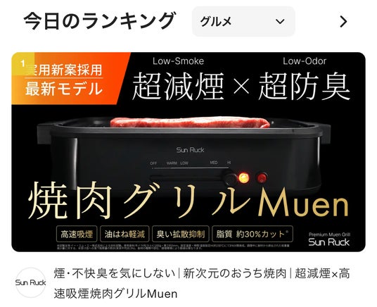 一芸特化型家電を数多く展開するプライベートブランドSunRuck(サンルック、本社:宮城県大河原町)から、超減煙×高速吸煙 焼肉グリル「Premium Muen Grill 無縁」のMakuake先行販売を2026年4月25日(土)より開始しました。