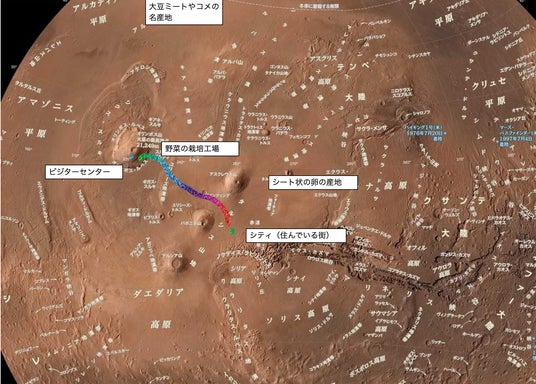 目的地は火星のオリンポス山麓のビジターセンターで、火星の歴史や地理を学びつつ、名産品を楽しむ予定。私は小さい時過ごした「地球」を思い出せるスポットが一番楽しみ。