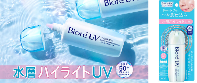 そこでこのたび、日やけ止め市場売上シェアNo.1*1ブランド「ビオレUV」の主力 「アクアリッチシリーズ」から、UVカットしながらハイライト効果*2で顔全体の印象を明るく見せる『ビオレUV アクアリッチ アクアハイライトローション』(通称:水層ハイライトUV)を全国発売します。