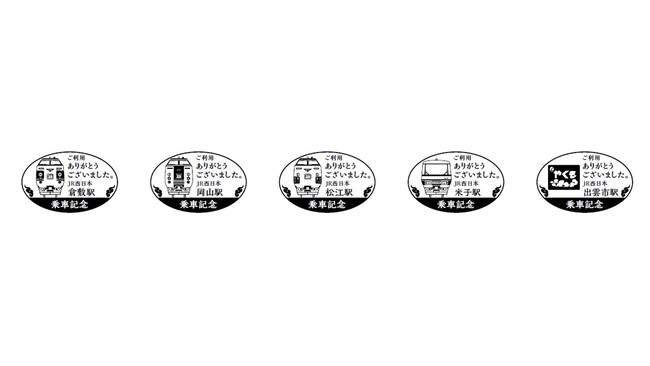 2022年10月から発売している「西日本懐鉄料金券(やくも)」をはじめ、特急「やくも」に関連した商品や列車をご利用いただいたお客様に感謝の気持ちを込めて、これまで登場した381系特急「やくも」のイラストや「やくも」のヘッドマークデザインが入った特別な記念乗車印をご用意します。