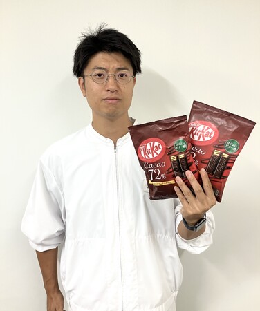 「キットカット」は、チョコレートとウエハースを組み合わせた製品です。これらの味の相性を考えた上で、苦みやフルーティーさといったカカオ本来の味を表現する必要がありました。そこで、オリジナルのカカオ72%のレシピを考案し、私たちが目指していた「ほどよい苦み」を表現することに成功しました。