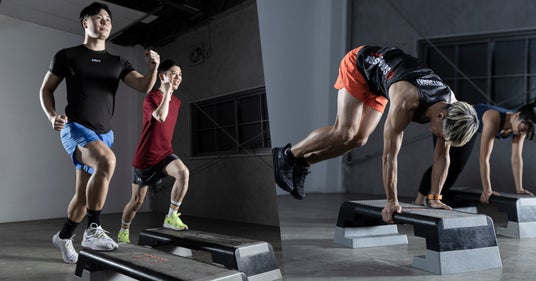 前後にウォーミングアップとクールダウン、メインパートでは、「ツールを使った障害物筋トレ+有酸素トレ」をワンセットとして4種目をサーキット形式でおこないます。
