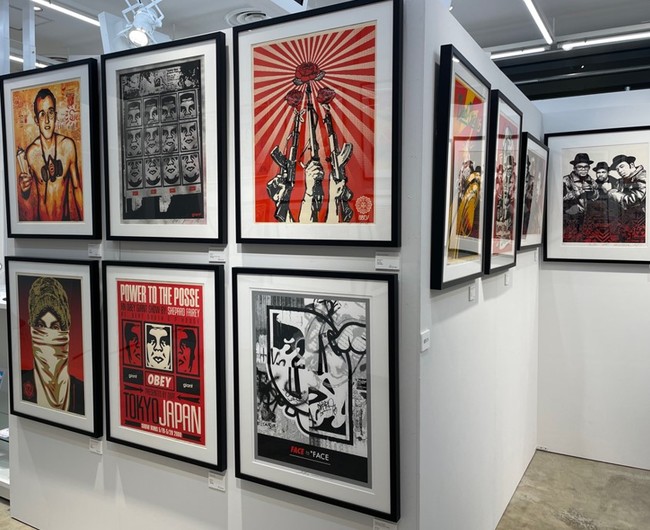 展示作品の中には、シェパード・フェアリーのサイン入りエディションなども集積しており、オリジナルステンシルの作品も展示する機会となっております。ぜひ高覧ください。