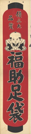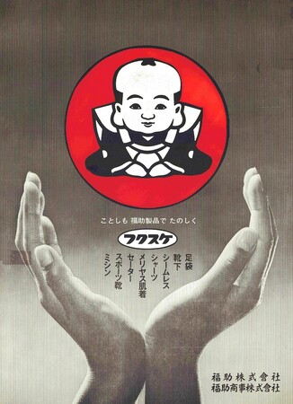 ●当社は昭和9年より靴下の販売を開始しました。全ての商品に「真心をこめて」をモットーに高品質な製品づくりを目指そうと『福助靴下』の名をつけ販売。ゴシック調のフォントを使用し宣伝活動を行ないました。