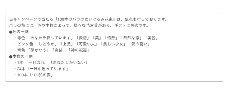 プレゼント: 1.100本のバラのぬいぐるみ花束 1名様