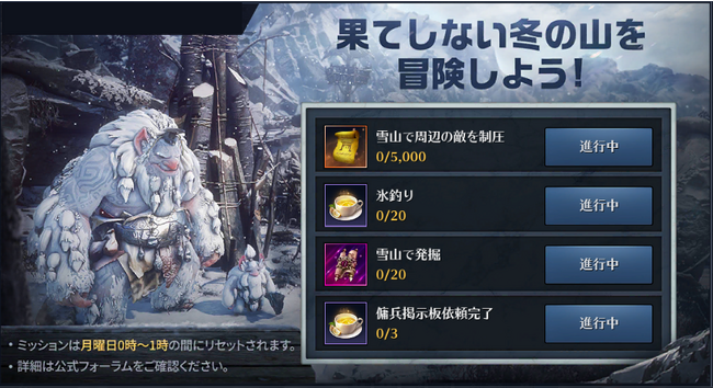 このように「果てしない冬の山」では冒険者の皆様が成長していくにつれてより多様な報酬が獲得できるようになるので、それを目標にプレイを楽しんでいただけるかと思います。