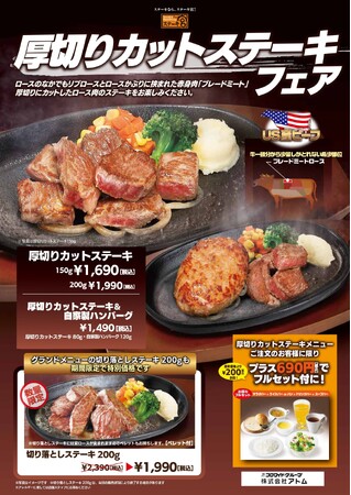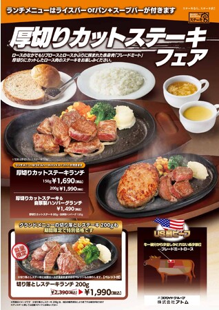 は、「ステーキ宮」(青森県、秋田県、岩手県、宮城県、山形県、福島県、神奈川県、新潟県、山梨県、長野県、石川県、富山県、福井県、愛知県、岐阜県、三重県、滋賀県、京都府、奈良県、大阪府、兵庫県、山口県、福岡県、熊本県、宮崎県の76店舗)で、2023年6月15日(木)から8月20日(日)まで「US産ビーフ厚切りカットステーキ」を販売いたします。