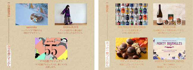 WATASHI organic / Earth MILK / &Green / ambie / dōzo / D.masque / Timeless Edition / nameraka / HOOLOLIVE / ママ応援プロジェクト / SOUNDLESS RECORDS / ROJI日本橋 / パティスリーアッシュ / MOUNT MAYON JAPAN / PAUL&JOE / ENBAN TOKYO / T’s Familiar / Kalm / EQUI