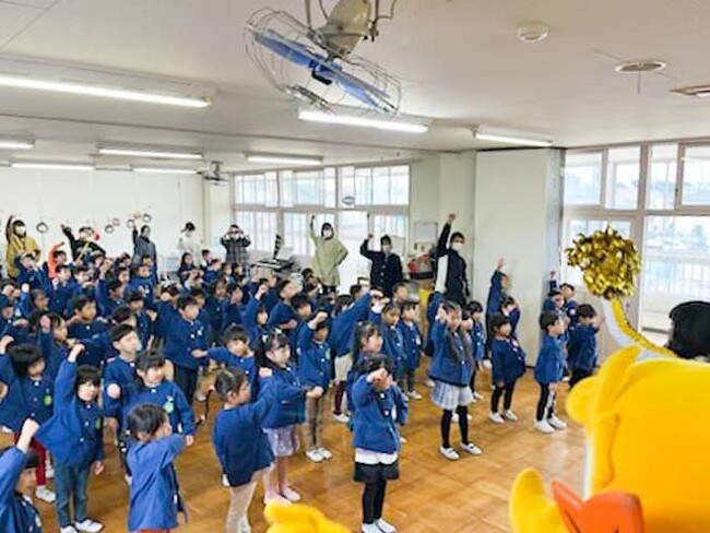 2023年12月5日(火)、シーホースくんとSuper GirlsのCHISAKI、YUKIが大樹寺保育園(岡崎市)を訪問し、園児の皆さんと一緒にクイズやダンスを楽しみました。