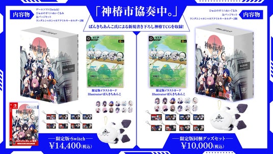 限定版はKAMITSUBAKI STUDIOの公式ストアであるFINDME STORE by THINKR限定で予約を受け付けております。神椿TCG「V.I.P」は、限定版のみ新規描き下ろしイラストにて付属いたします。