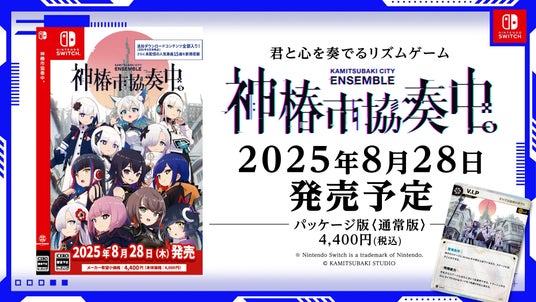 『神椿市協奏中。』のNintendo Switchパッケージ版は予約受付中!価格は4,400円(税込)で、これまで発売された全てのコンテンツ(販売価格9,320円(税込)分)が含まれているほか、2025年7月3日(木)から放送開始のTVアニメ『神椿市建設中。』の楽曲も収録されており、リズムゲームで遊ぶことができます。