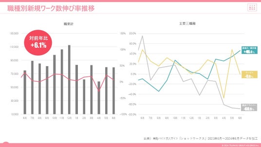 2.新規ワーク数は、前年比+6.1%。主要職種では倉庫内・軽作業が前年比+46.4%と伸長。