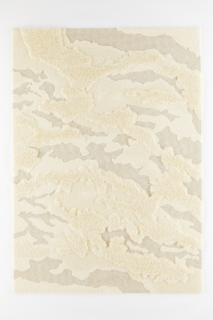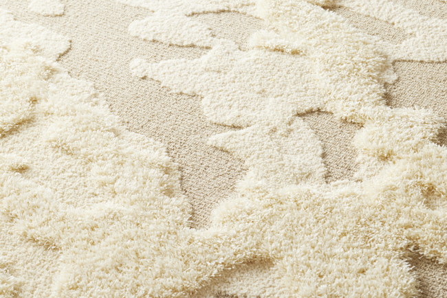 「WASHI」は、江戸時代から伝わる和紙を張り合わせた敷物「油団」(ゆとん)から着想を得たデザインを、山形緞通の緻密な手刺(てさし)技法で表現した絨毯です。和紙原料の楮(こうぞ)をモチーフに、手作業と自然乾燥で加工された和紙の撚り糸「紙糸」に、生成りの羊毛とシルクを掛け合わせることによって、豊かな触覚で生活の足元に溶け込むデザインとなっています。表面の毛足は、8mm、10mm、15mm、25mmの4層の長短で構成され、玄関から寝室、リビングまでさまざまな空間に適した全4サイズの展開です。日本固有の天然素材である和紙は、素足で過ごす日本人の生活文化に適した素材であり、その風合いと和紙の柔らかな質感は、住空間に自然な心地よさをもたらします。