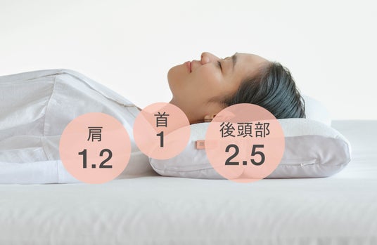 「医師がすすめる健康枕」は、nishikawaと整形外科医 奥山隆保先生※との共同研究で誕生したまくらシリーズです。後頭部・首・肩の三点を支える「三点支持理論」に基づいた立体設計。「肩1.2:首1:後頭部2.5」の圧力バランスで支え、頚椎のS字カーブを正しくキープし、理想的な寝姿勢を保ちます。