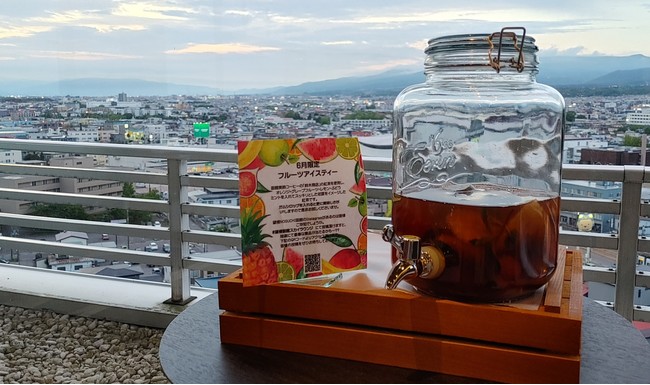 この度2022年6月1日(水)よりフルーツティーの提供を始めます。食事処スタッフが果物をセレクトして手作りでご用意いたします。見た目にもかわいらしく、フルーツの甘みと酸味が紅茶の風味によく合い、湯上りにぴったりの飲み物です。