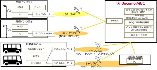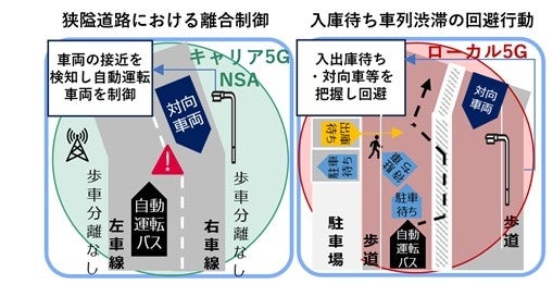 こうした背景を踏まえ、NTTドコモビジネスおよび関係各社は、通信制御(無線リソース最適化)と路車協調(ローカル5G・路側インフラ連携)を融合し、「都市部における混雑発生地域や見通しの悪い狭あい道路でも安定して運行できる自動運転レベル4」の社会実装を目的とした検証を行います。
